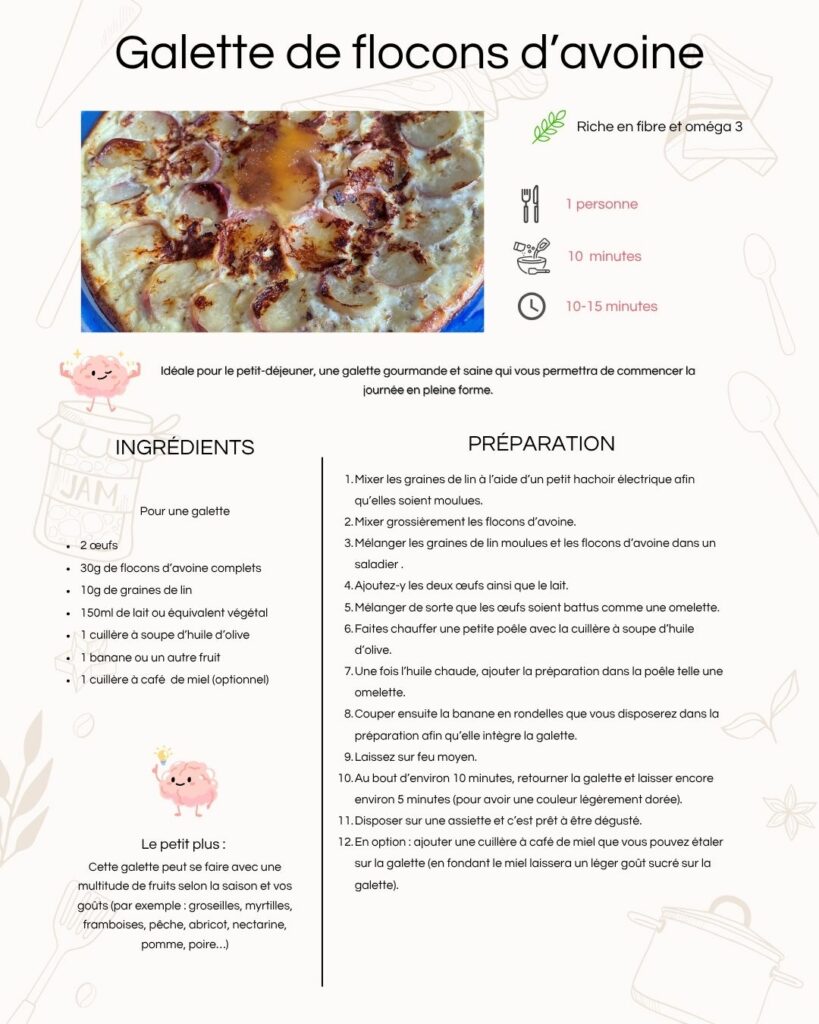 Galettes de flocons d'avoines Idéale pour bien démarrer la journée, cette galette à base de flocons d’avoine est à la ...