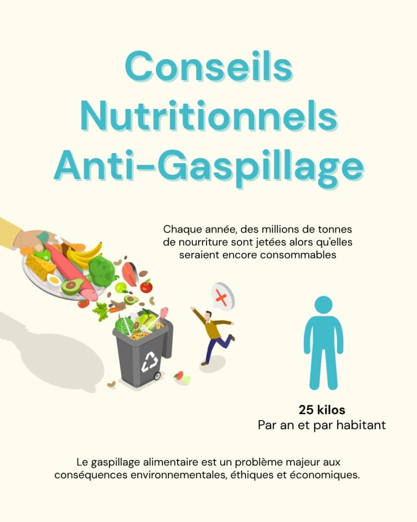 Gaspillage alimentaire Conseils nutritionnels anti-gaspillage : mangez malin et écologique Le gaspillage alimentaire est un enjeu majeur aux conséquences environnementales, ...